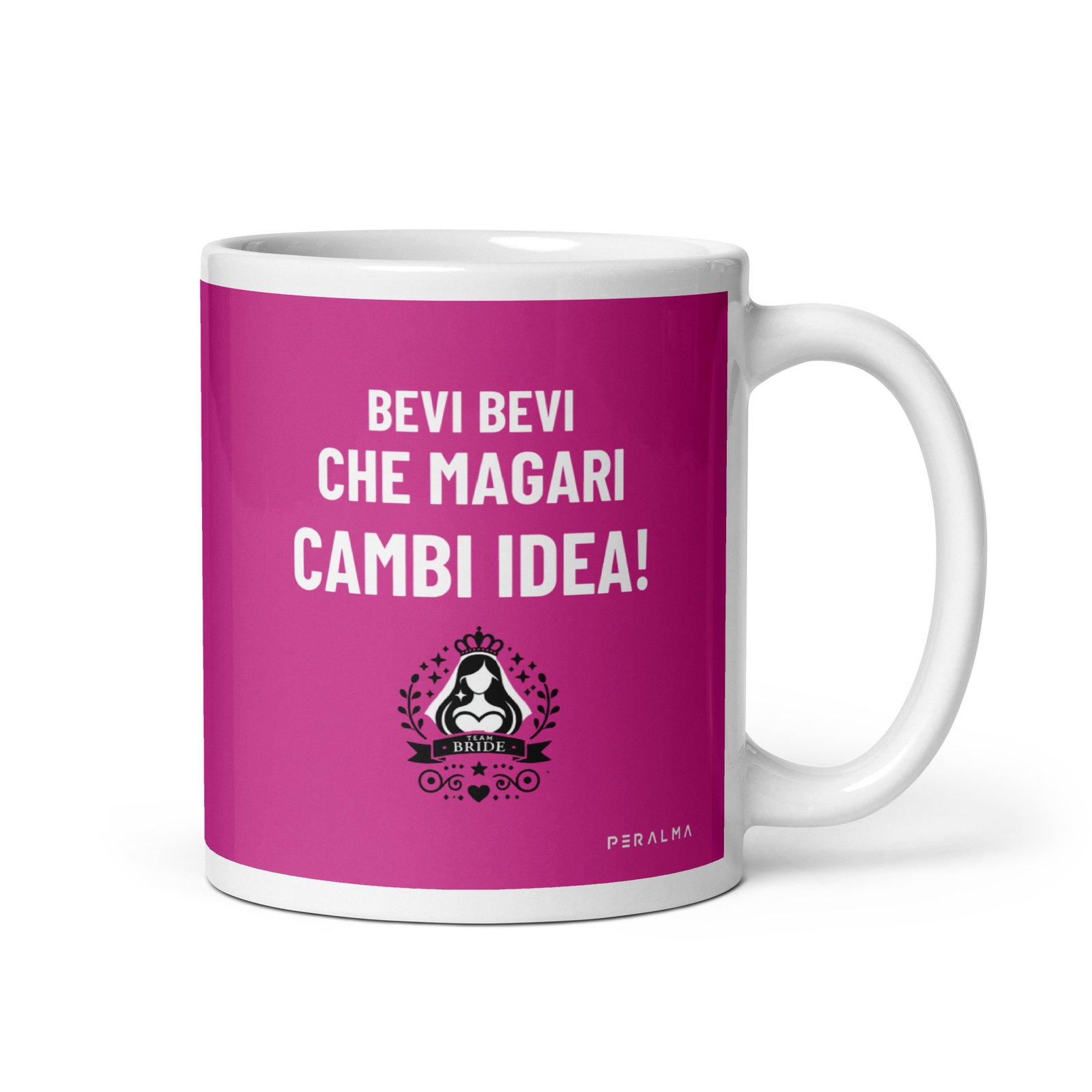 Se l’addio al nubilato è stato un vortice di emozioni, risate e forse qualche dubbio esistenziale, questa tazza è il souvenir perfetto per la futura sposa. Con la scritta “Bevi, Bevi che Magari Cambi Idea!“, stai suggerendo con un sorriso che le decisioni importanti possono sempre essere riconsiderate, soprattutto dopo qualche drink.