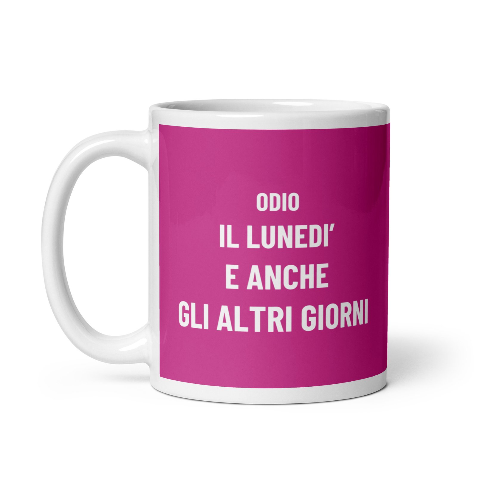 Diciamolo chiaramente: qui non si fanno sconti alla realtà. La scritta “Odio il lunedì. E anche gli altri giorni” è la confessione sincera di chi ha smesso di fingere entusiasmo e ha abbracciato il lato oscuro della settimana… e non solo. Perché, in fondo, chi ha bisogno di ottimismo quando puoi avere umorismo nero?