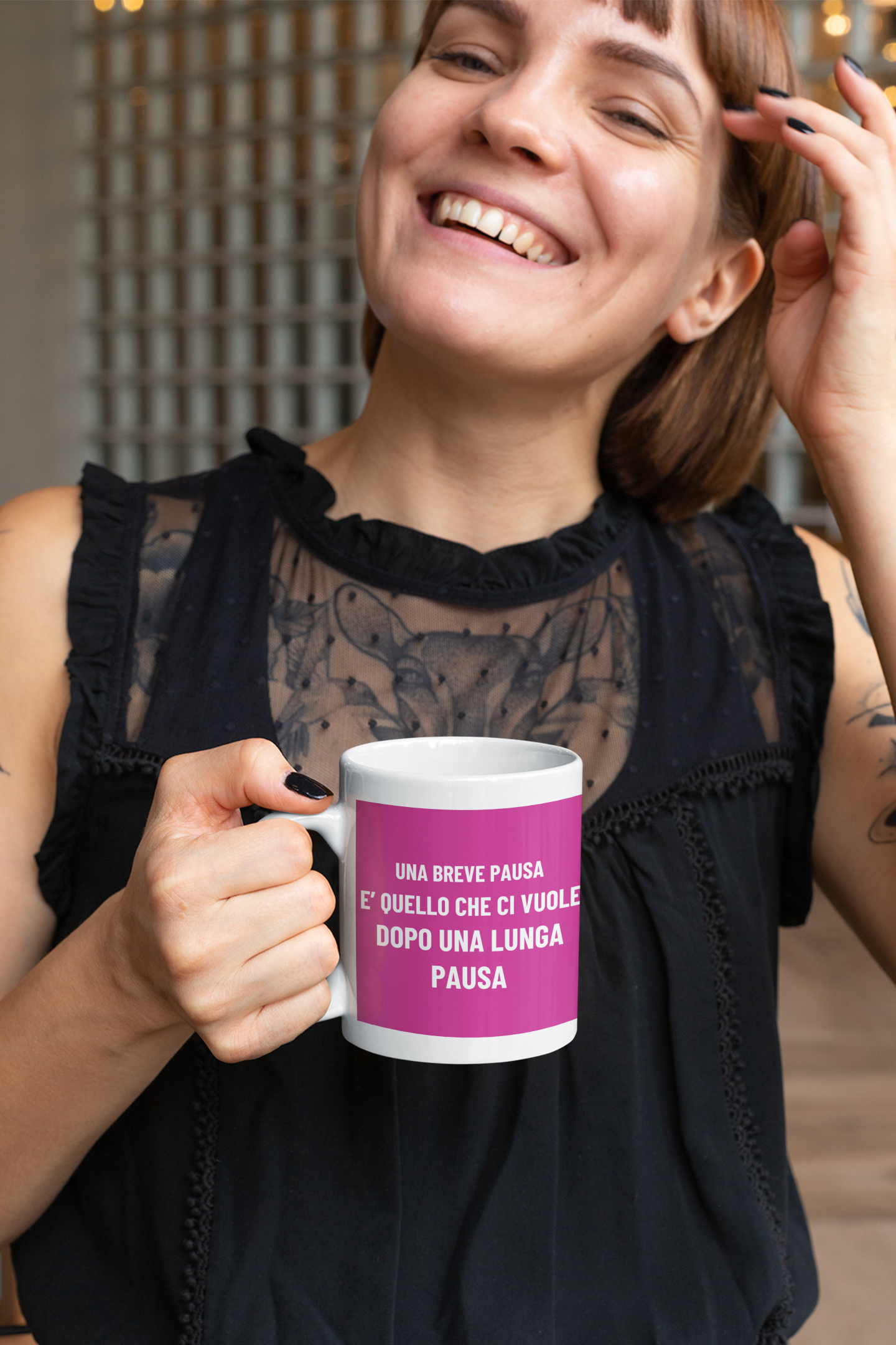 Non ti azzardare a riempire questa tazza con fretta o agitazione: prenditi il tuo tempo, fallo con calma, allunga le gambe, e preparati a goderti un’altra meritata pausa… magari mentre pensi a tutte le cose che non farai oggi. Perché, alla fine, la pausa perfetta è quella che dura per sempre.