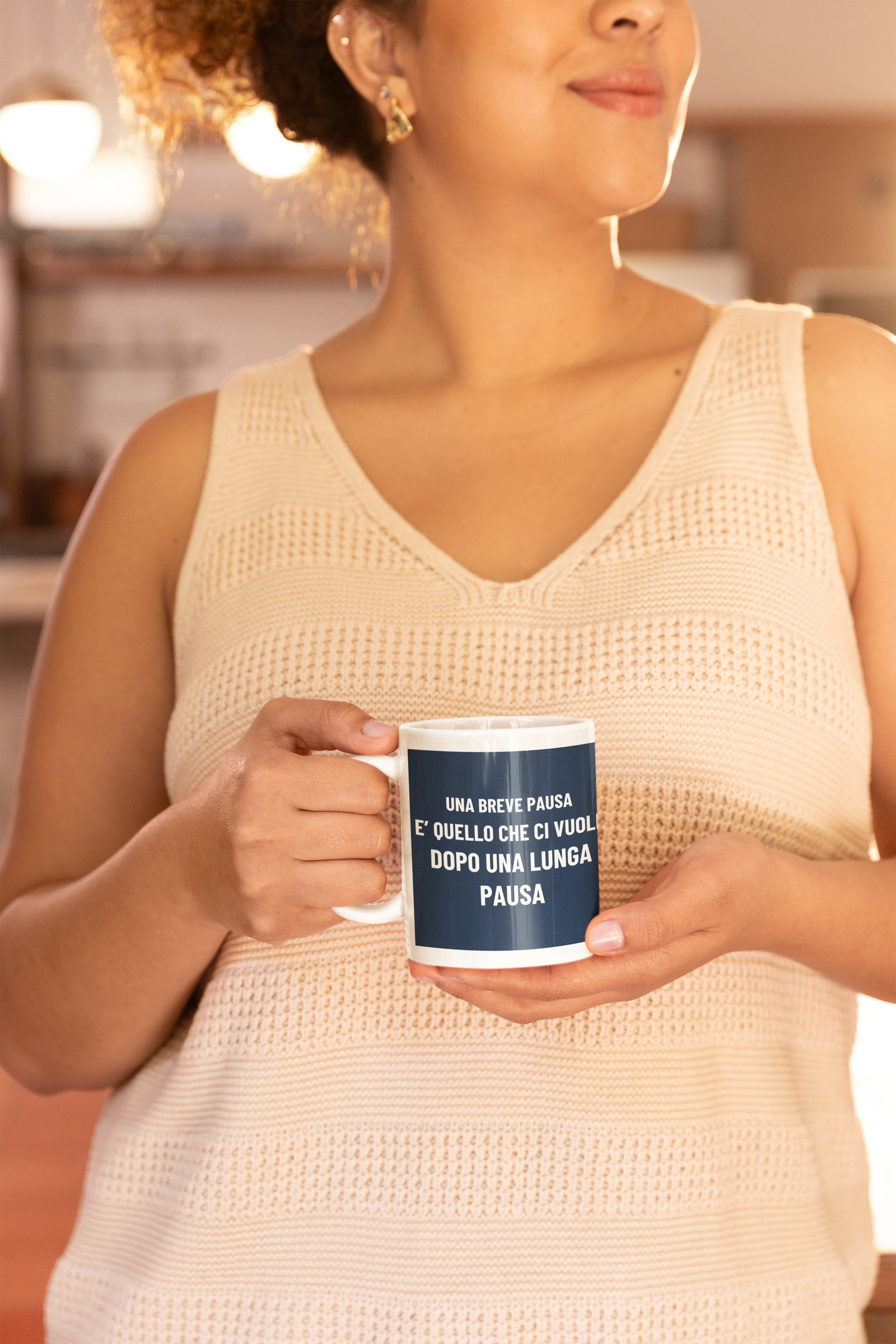 Con la scritta “Una breve pausa è quello che ci vuole dopo una lunga pausa”, questa tazza sfida le convenzioni, ribalta le priorità, e afferma con orgoglio che, in fondo, la pausa perfetta è quella che non finisce mai.